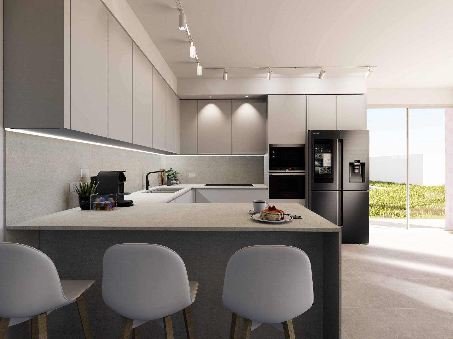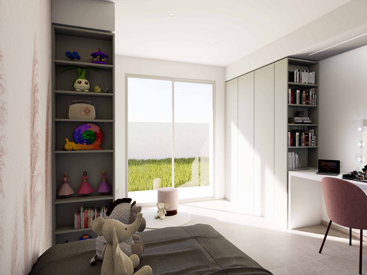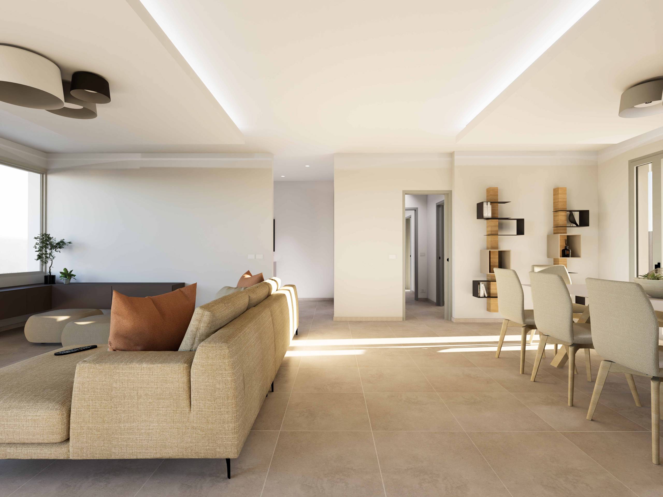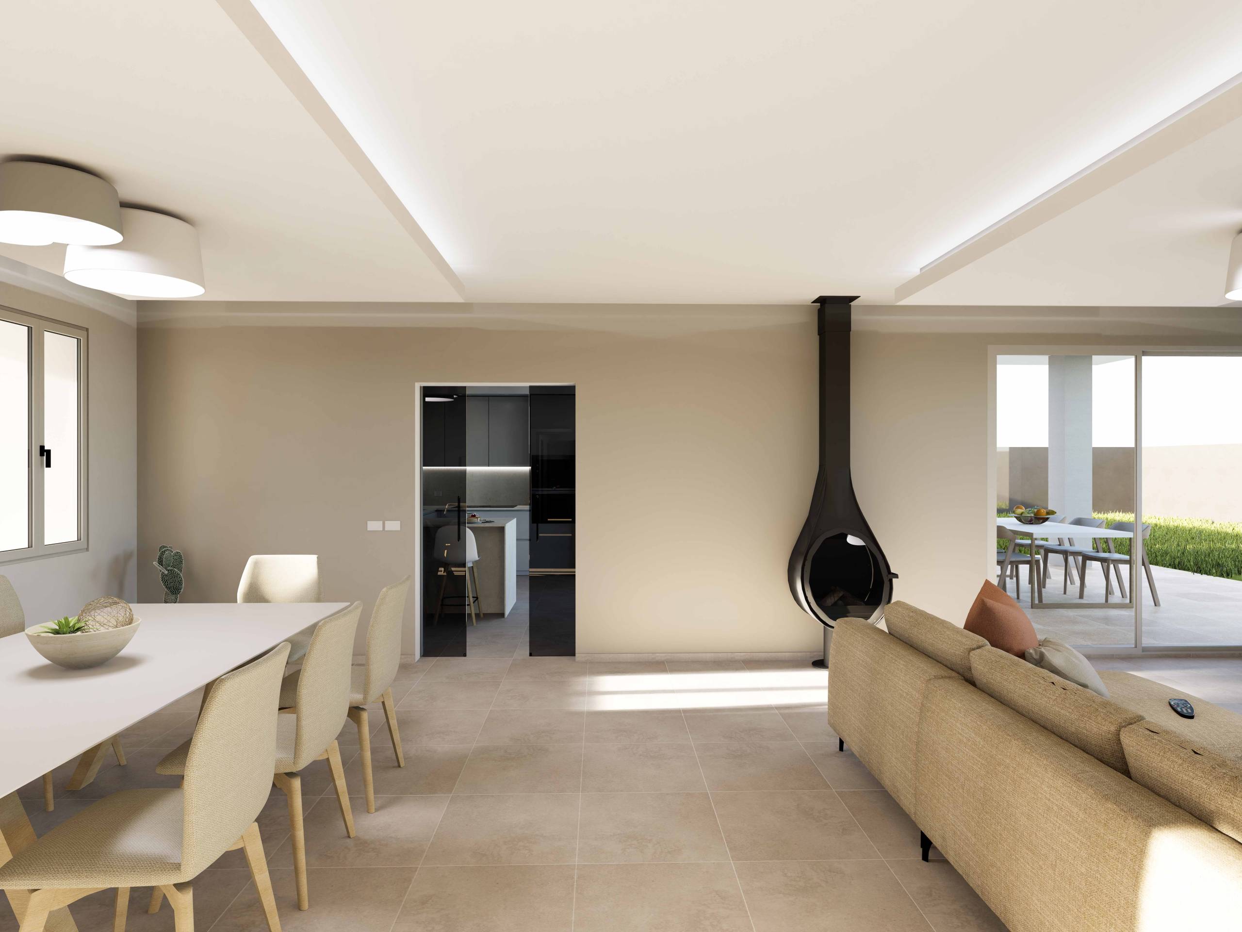 Questa Villa si sviluppa su un unico piano, ed è composta da 3 camere da letto di cui quella padronale con cabina armadio, due bagni, una zona lavanderia, un soggiorno molto grande, una cucina con dispensa, ed infine il locale tecnico annesso all’abitazione. Separato dalla casa troviamo l’autorimessa con annesso bagno di servizio.