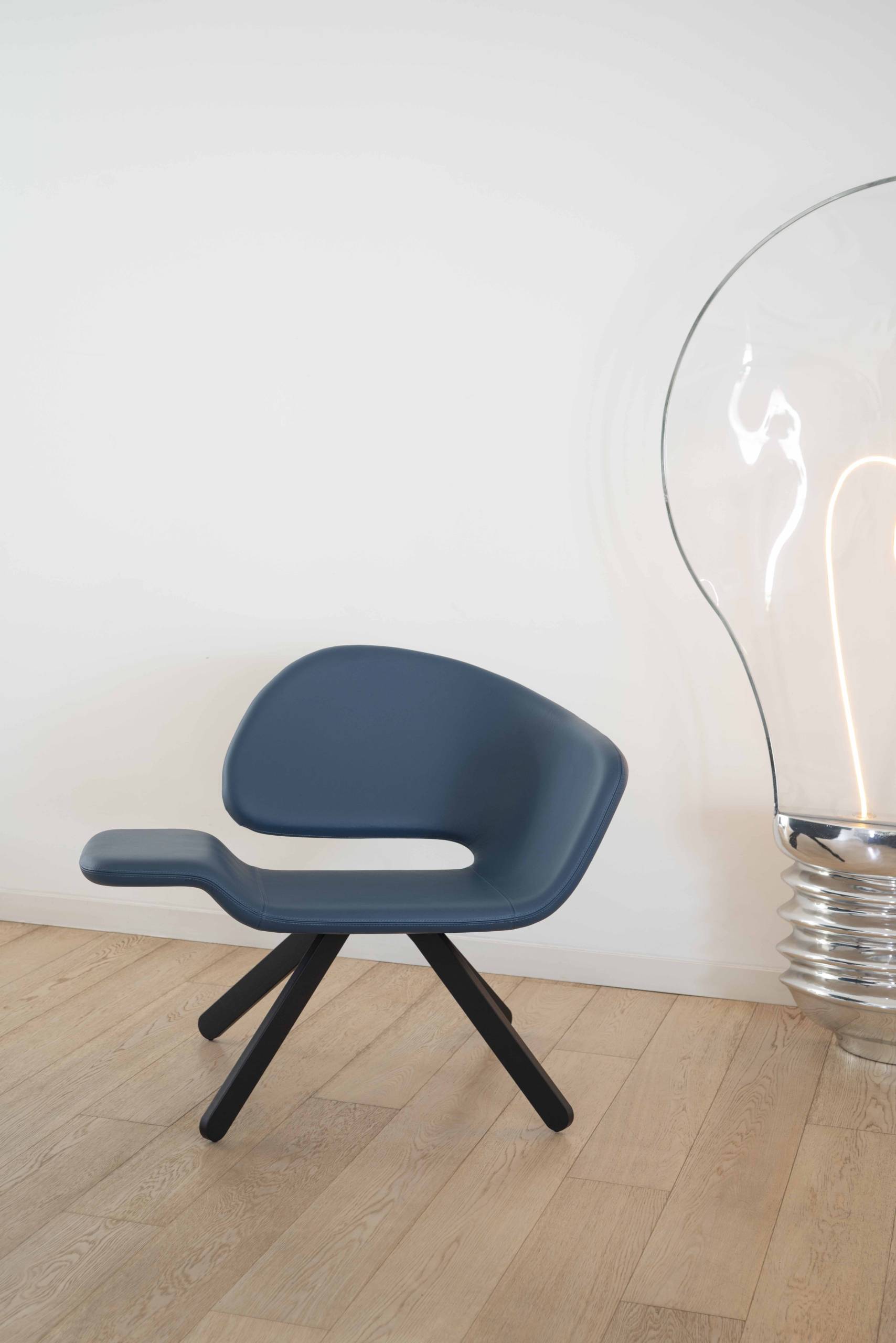 Nalì rappresenta un’eccezionale sintesi tra design distintivo, eleganza e comfort, ideale per ogni ambiente raffinato. Nalì evolve il concetto di relax grazie alla forma allungata della seduta, utile per l’utilizzo di un device o che può costituire un comodo appoggio per sollevare le gambe. Disponibile con un solido basamento a 4 gambe in metallo verniciato o a 4 razze in rovere massello, questa poltrona lounge risponde a tutte le esigenze estetiche e funzionali. Entrambe le versioni sono caratterizzate da una morbida imbottitura in schiuma indeformabile e un rivestimento in tessuto o pelle di alta qualità, che assicurano comfort e aggiungono piacevoli sensazioni tattili e visive.