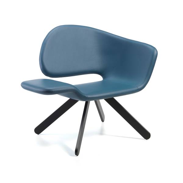 Poltrona Lounge imbottita e rivestita, basamento 4 gambe in metallo verniciato.